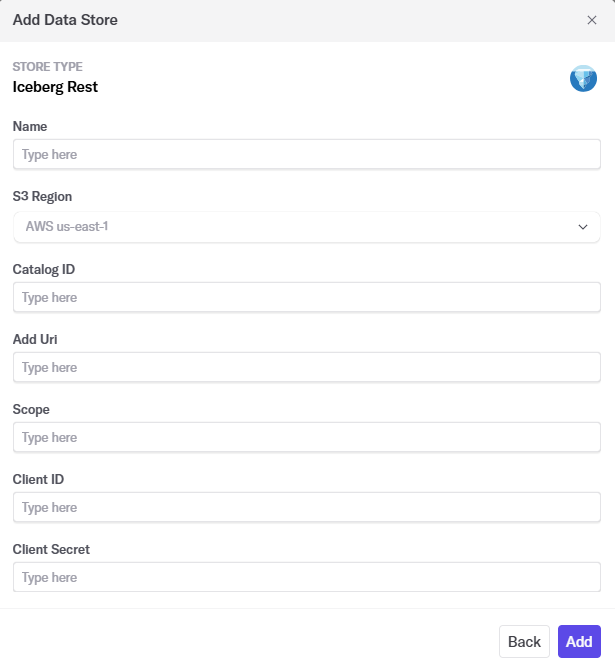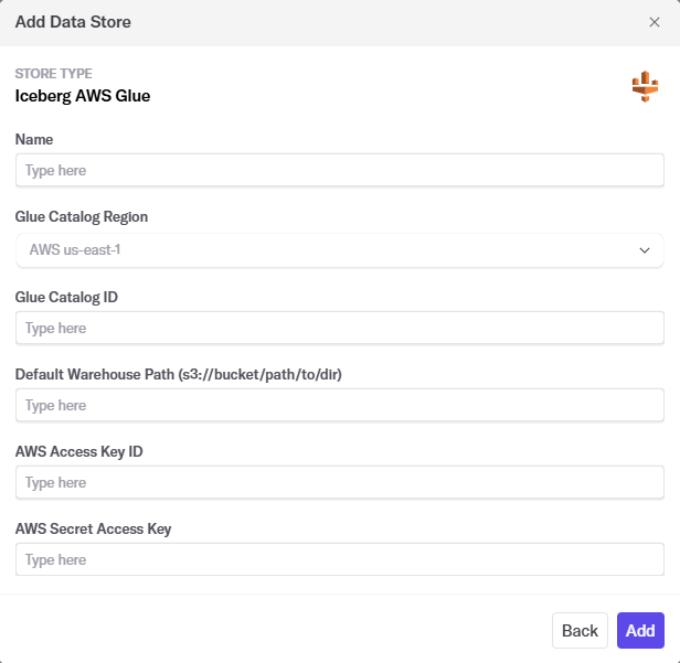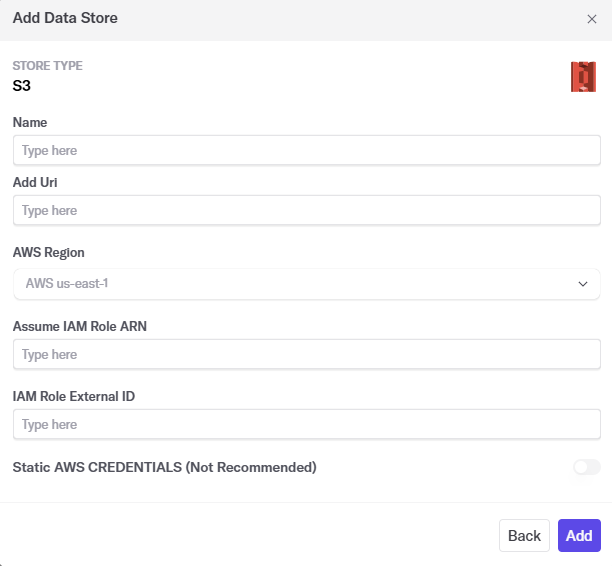 Note Be sure to match the data store type with the streaming store where streaming data resides.
