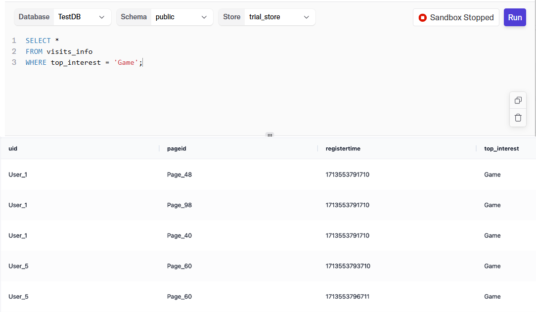 For example, the below query finds info on pages visited by users whose top interest is gaming.