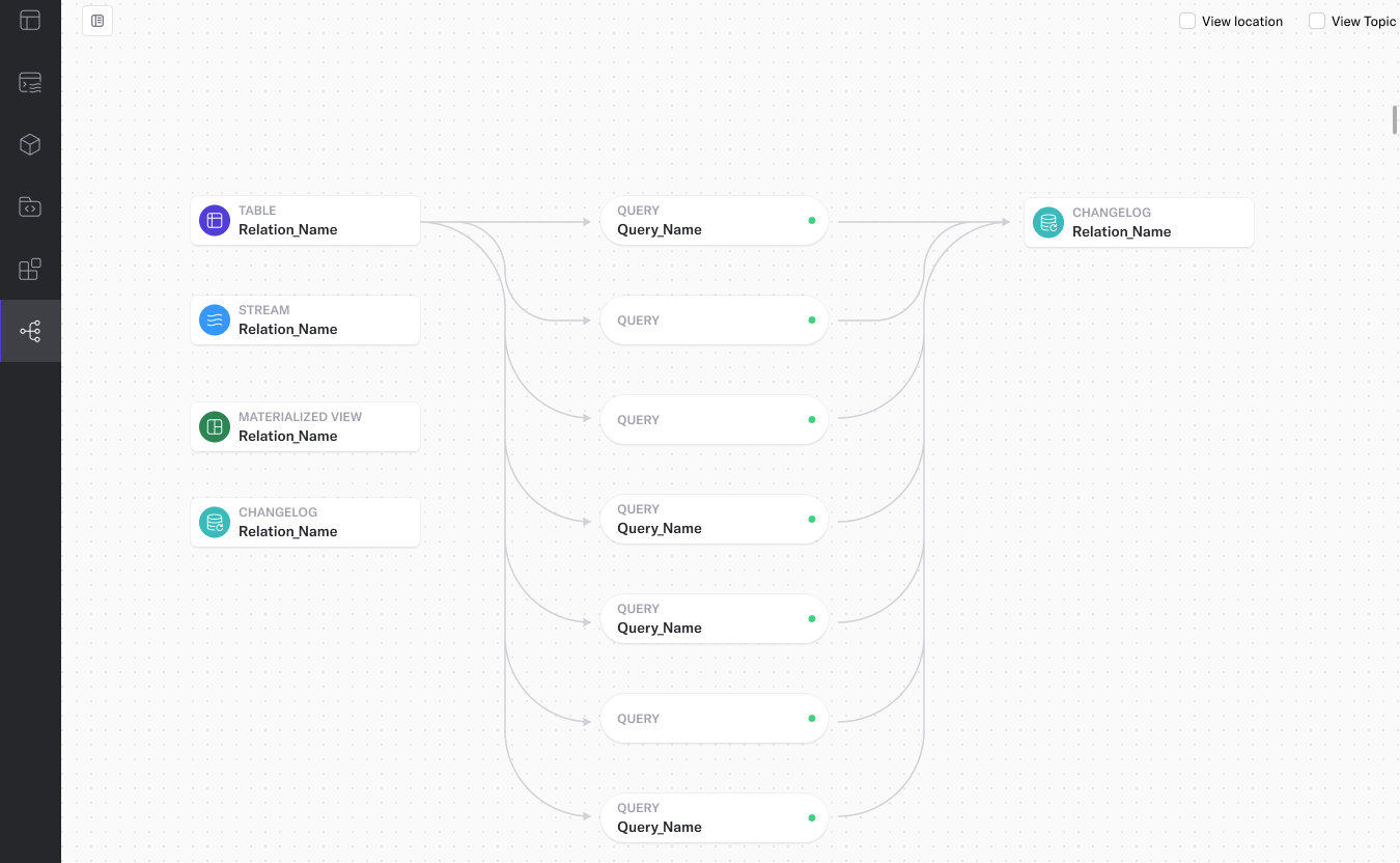 * see all aspects of the pipeline you’re building – joins, sources, pipeline results (such as writings to a materialized view), and more